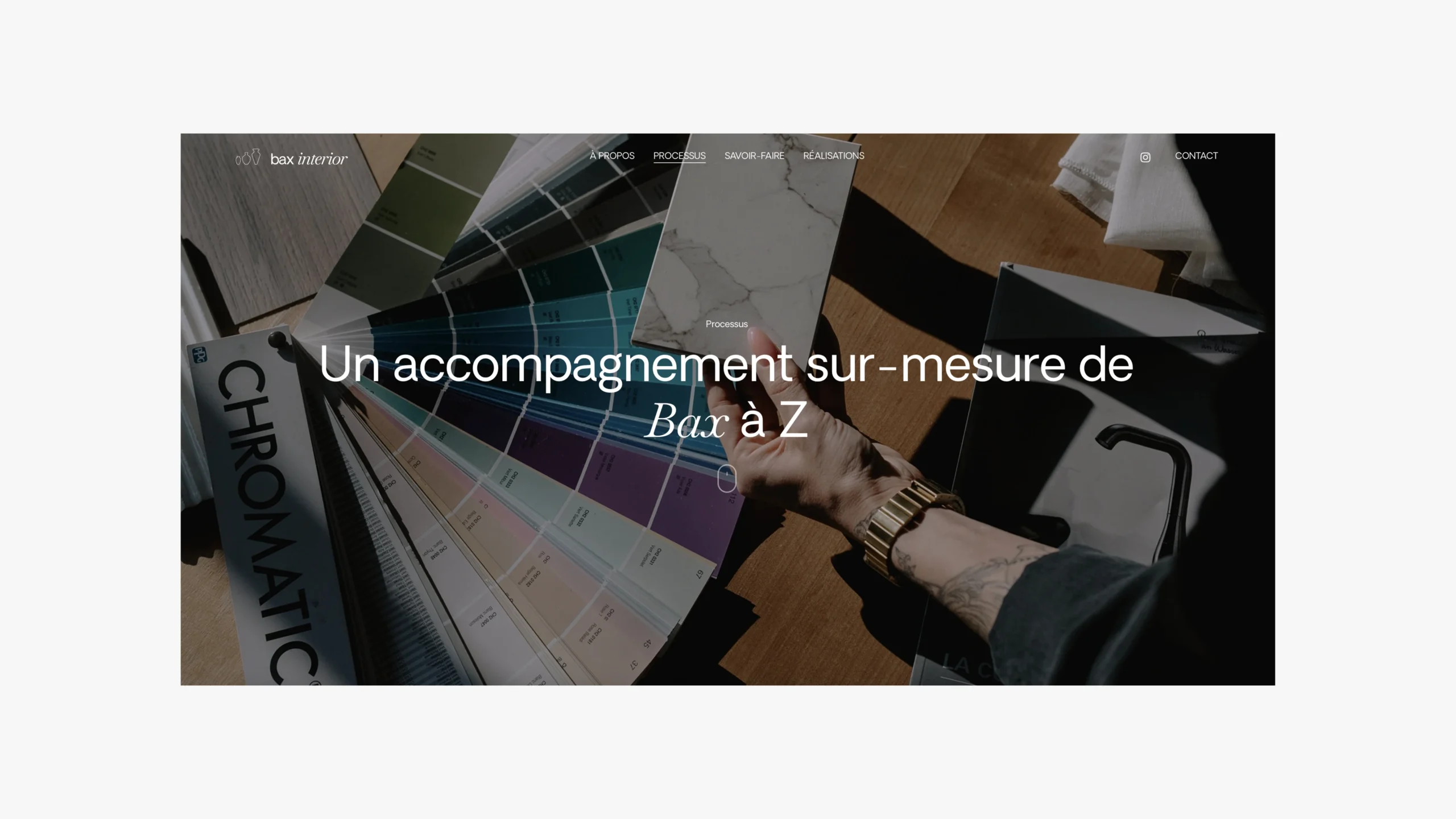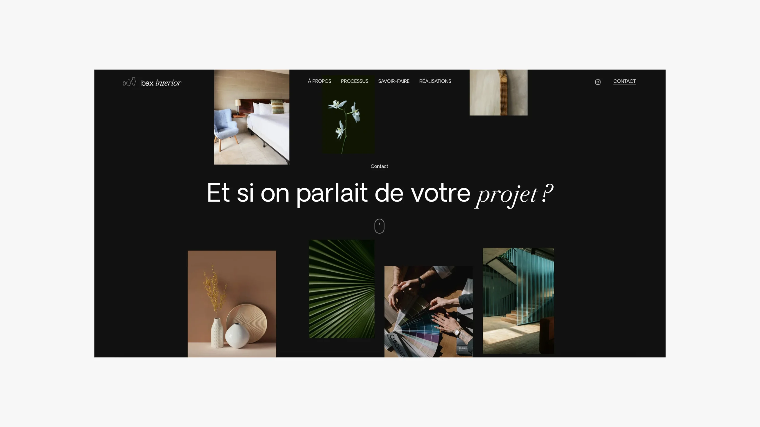 Not In Paris Now réalise l’identité visuelle et le site web de Bax Interior. Le logo est composé d’un jeu de 2 polices de caractères, créant une ambivalence propre au style du studio : concevoir des espaces à la fois minimaux et épurés mais aussi subtils, détaillés, garnis.