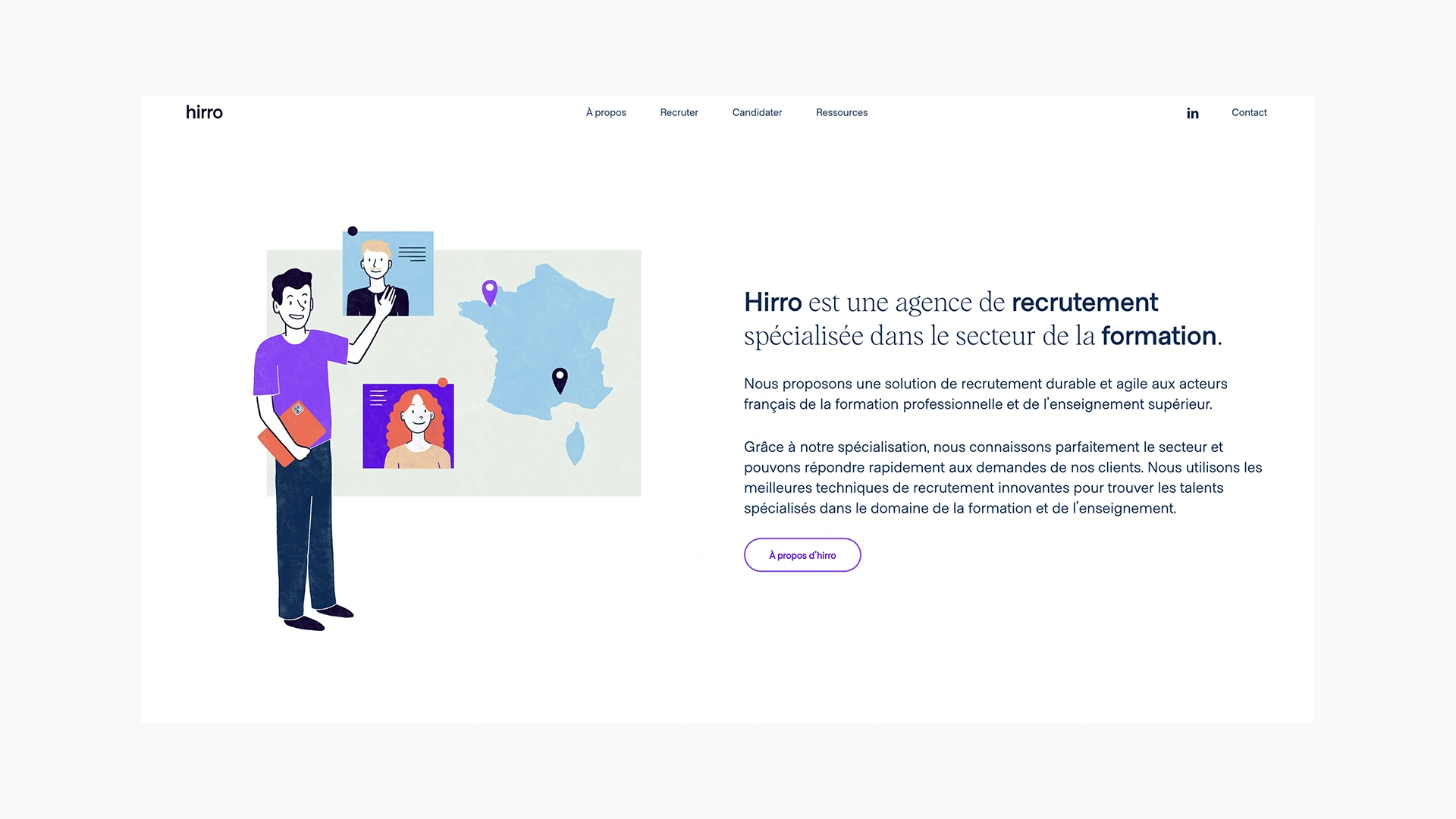 hirro est une agence de recrutement spécialisée dans le secteur de la formation. Fondée par Martin Chauvel en 2023, l’entreprise rennaise prône une nouvelle manière de concevoir le recrutement, notamment par la mise en pratique d’un suivi sur mesure pensé pour tout type d’organisme de formation.