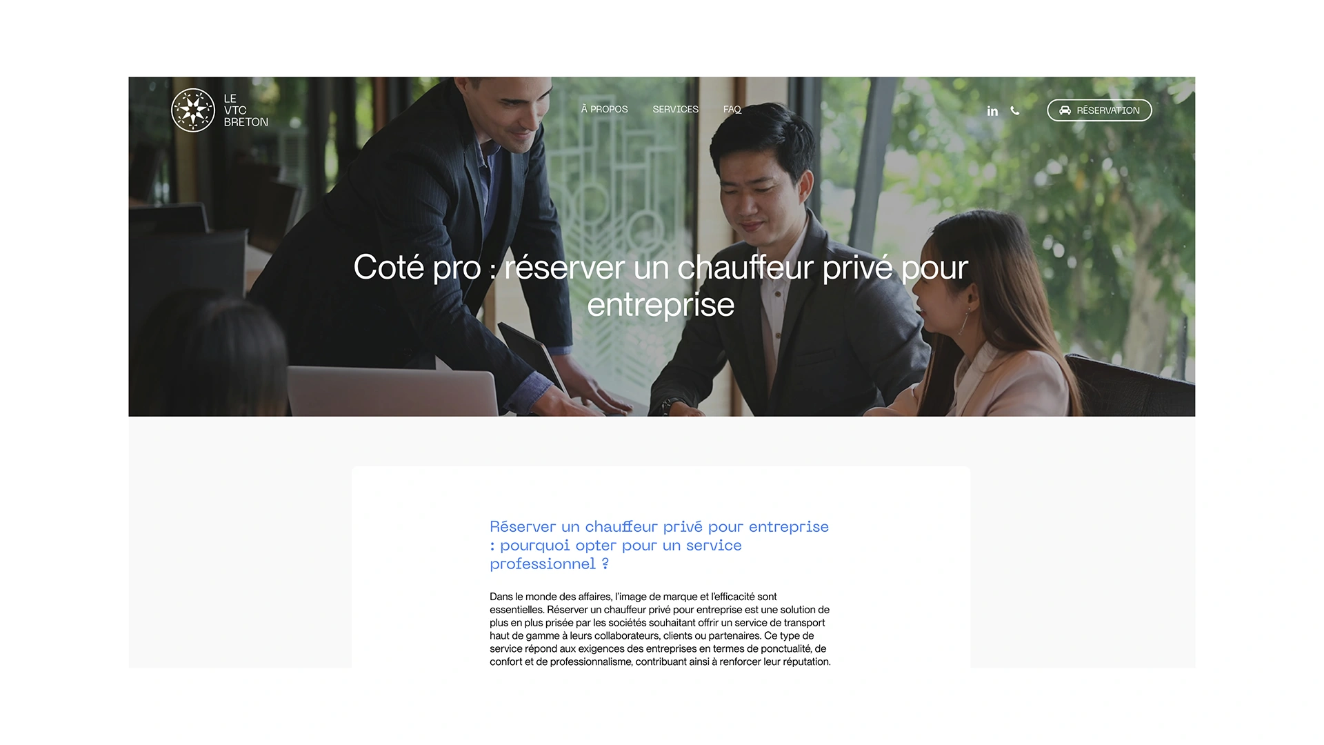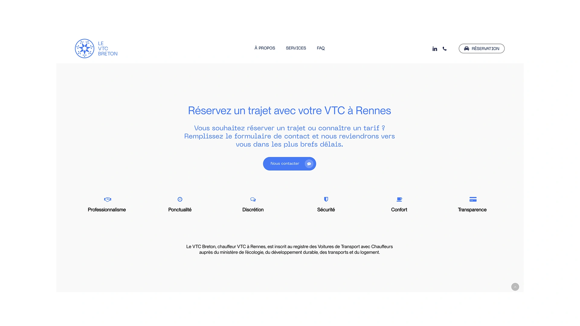 Le VTC Breton est une société de transport par chauffeur privé basé à Rennes. Créée par Fabien Léon, chauffeur VTC, Le VTC Breton fonde son expertise sur une grande qualité de savoir-faire de la part de ses chauffeurs.
