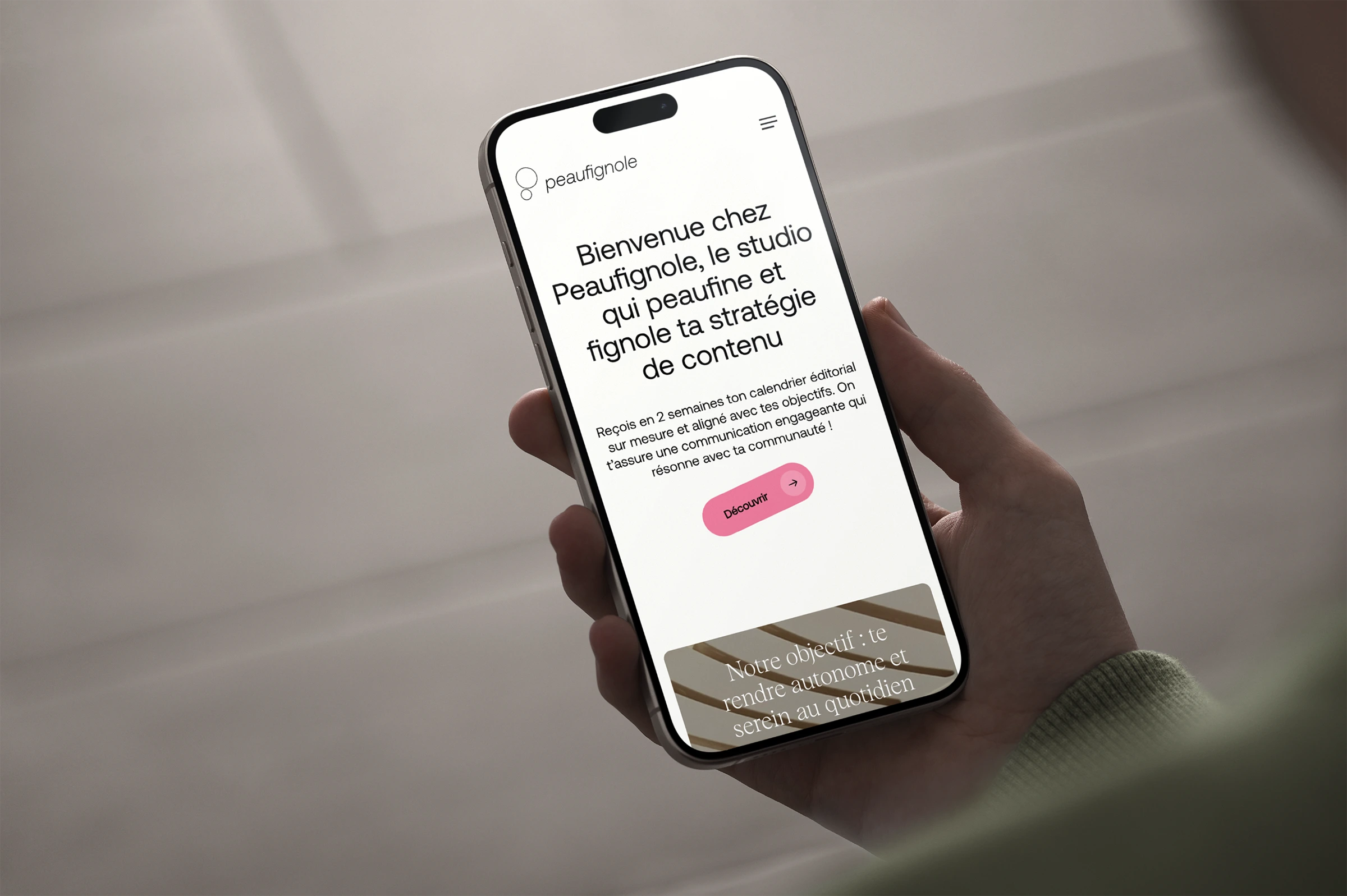 Contraction de deux termes — peaufiner, fignoler — le nom du studio repose sur l’idée d’une créativité en profondeur, détaillée et soignée, adaptée à tous types de secteurs d’activité. Spécialisé dans la création de calendriers éditoriaux pour indépendants et solopreneurs, Peaufignole s’adresse à un public large et éclectique. L’identité visuelle conçue est donc à la fois accessible, universelle et précise.