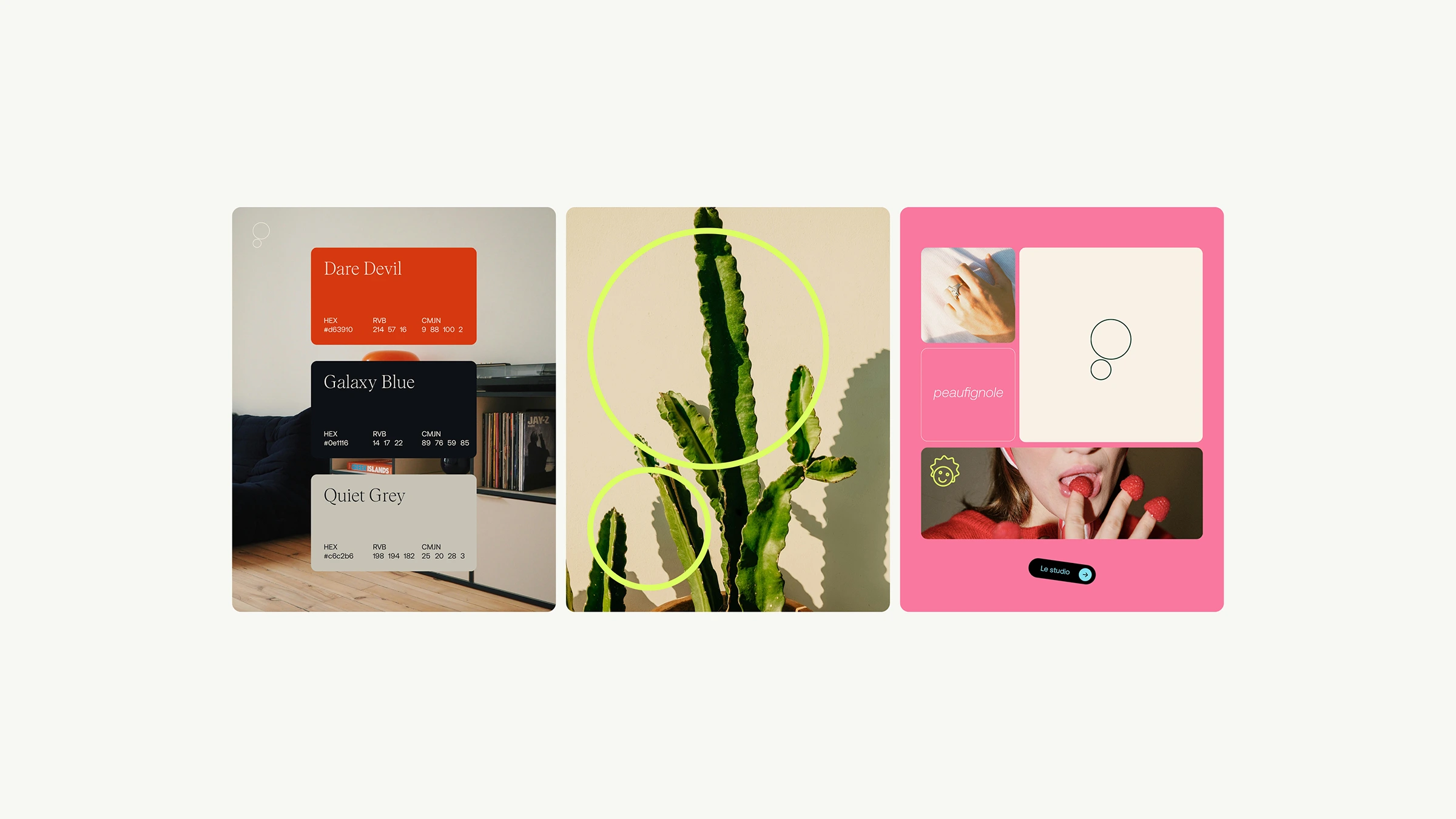 L’aspect contemporain et novateur de Peaufignole se retrouve dans la mise en place d’un système visuel dynamique et minimal.