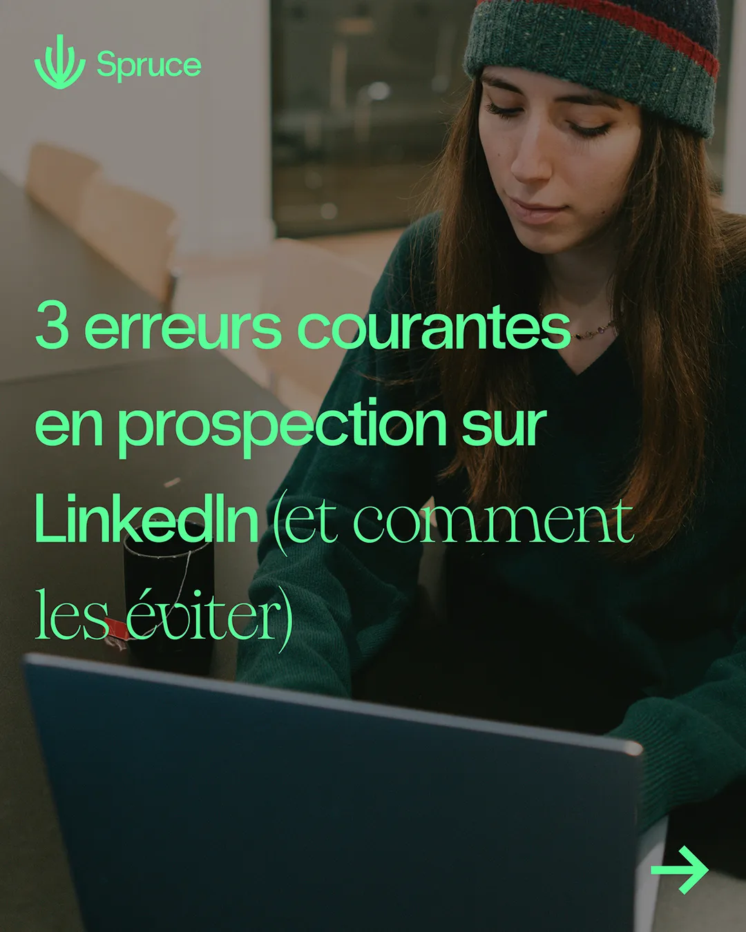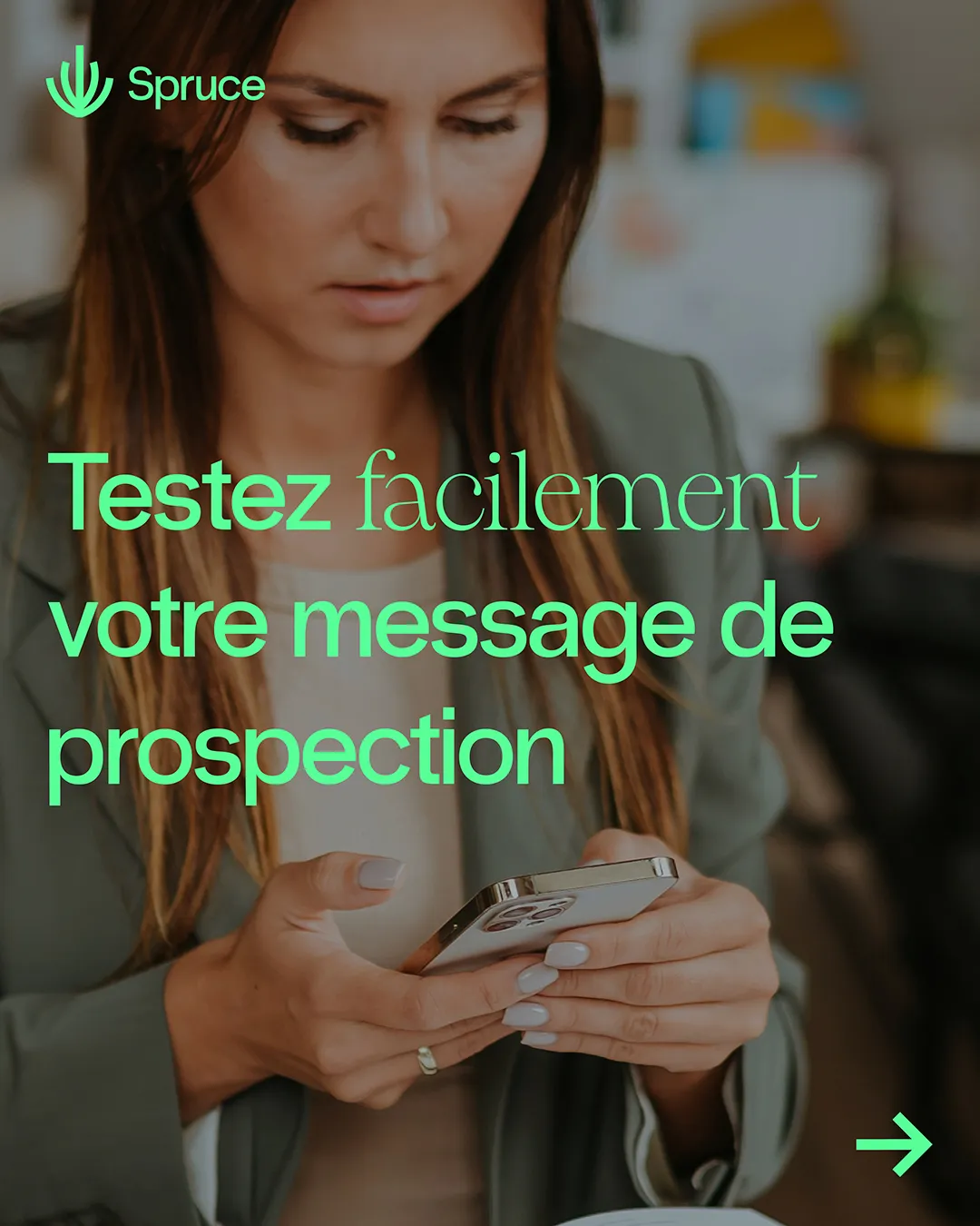 Spruce est un service de prospection spécialisée dans le messaging mutli canal pour entrepreneurs, équipes commerciales et start-ups. Grâce au développement no-code et l’intervention de l’IA, Spruce permet à ses clients de contacter uniquement les personnes qui les intéressent, sans même avoir à les trier manuellement, et de leur envoyer des messages personnalisés. Spruce accompagne ses clients sur la stratégie à adopter pour construire une approche efficace et percutante.